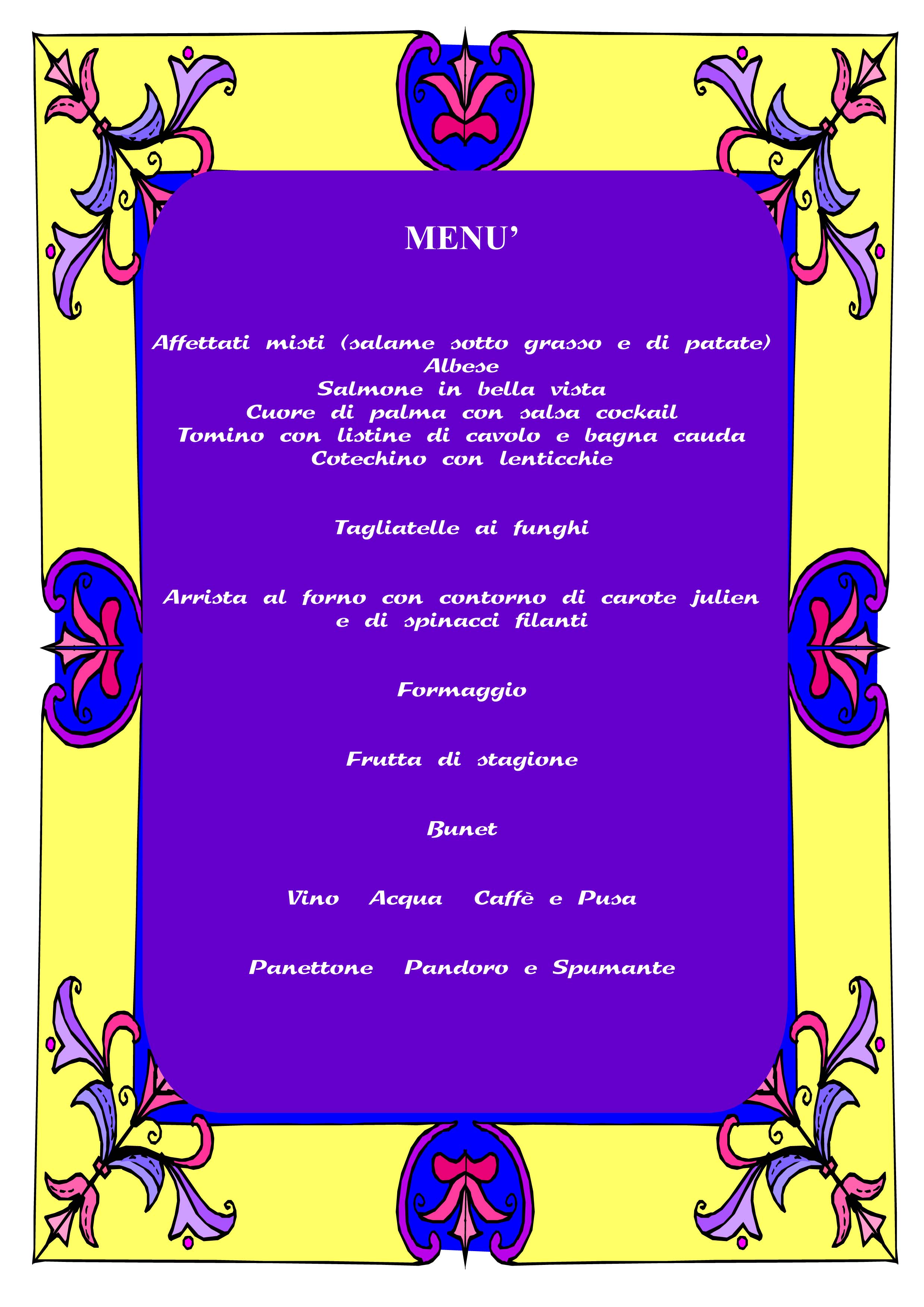 Se volete unirvi a Noi e festeggiare l’arrivo del 2011 con un’ottima cena tra amici trovate qui sotto il menù completo.